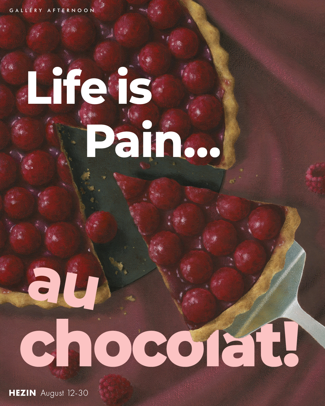 Gallery Afternoon is pleased to present Life is Pain…au Chocolat!, the first solo exhibition by gallery artist Hezin (b. 1991), opening on Tuesday, August 12.