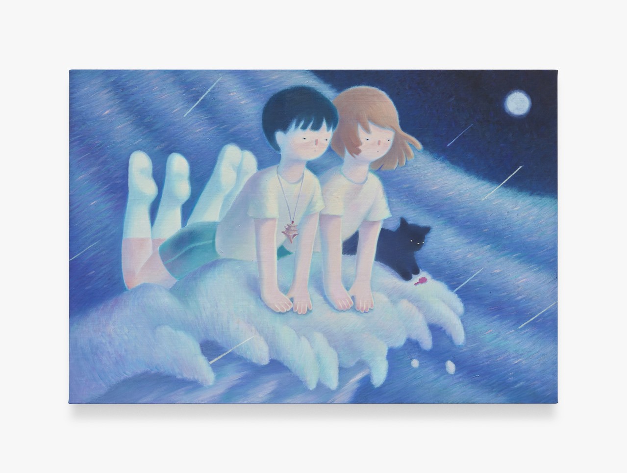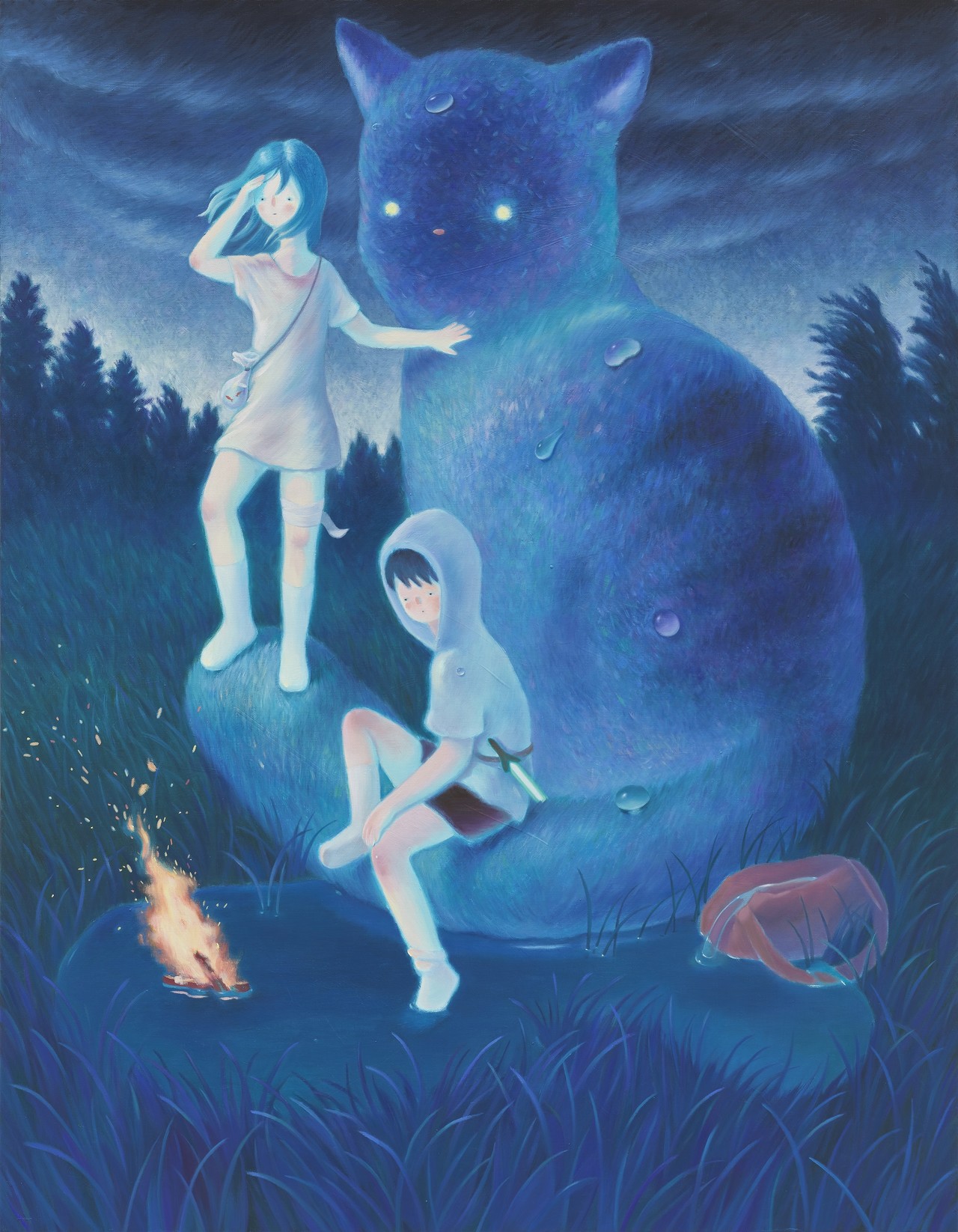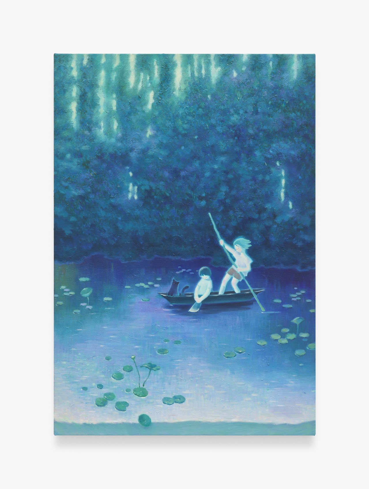 In this exhibition, Kim offers calm blue toned scenes where her figures drift between childhood and adulthood. Quietly absorbed in their own worlds, they shift between cool distance and gentle warmth, revealing the mixed emotions that come with growing up, including uncertainty, solitude, and a soft but steady sense of strength.